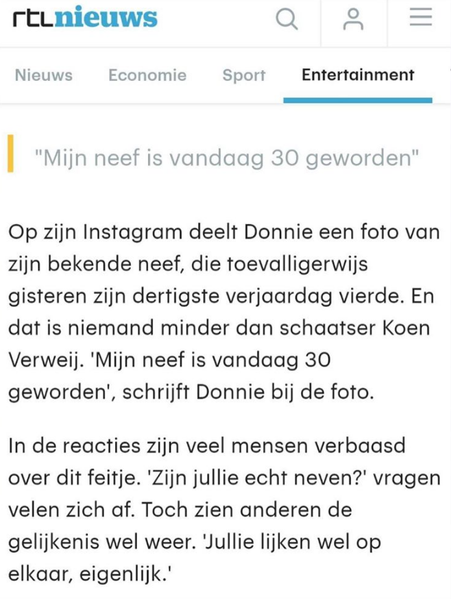 Prachtig, Donnie noemde Koen Verweij ‘neef’ op z’n Insta en een journalist dacht dat dat betekende dat ze familie waren 😂