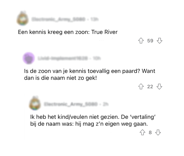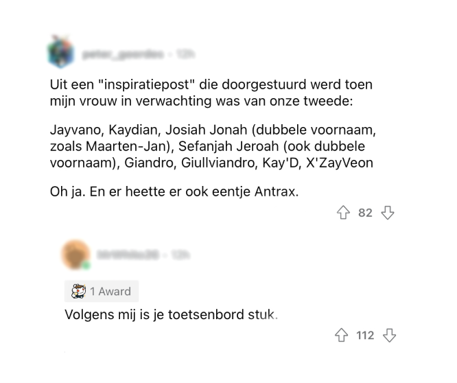 1. Na het lezen van dit soort namen, had deze Reddit-gebruiker heel veel vragen.