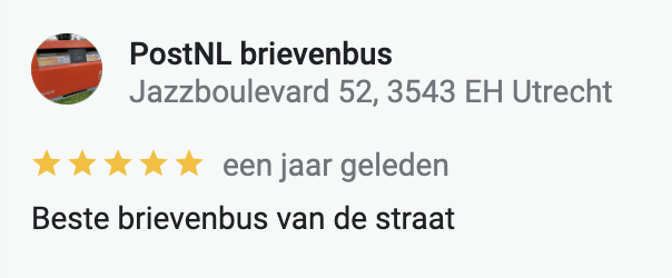 7. De PostNL-brievenbussen moeten wel gewoon blijven presteren om goede reviews te krijgen op Google.