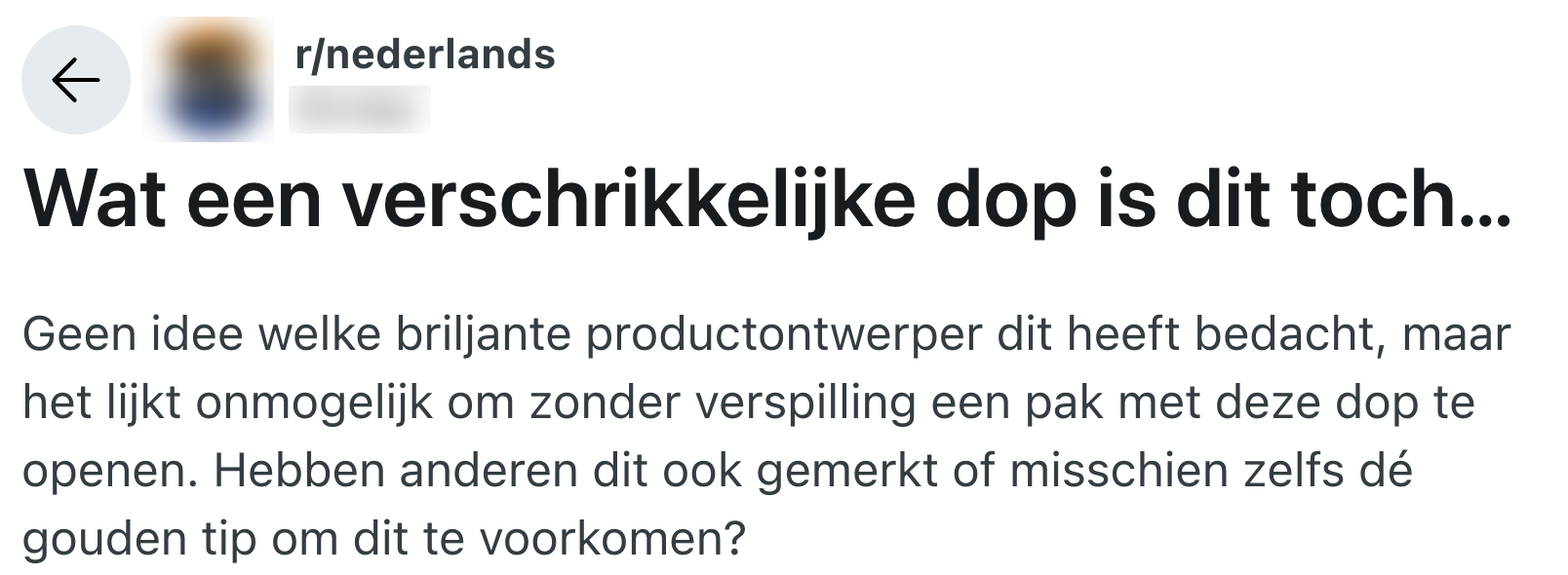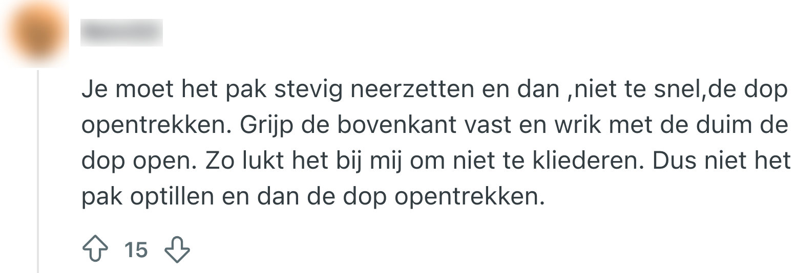 Doppen en Nederlanders lijken een steeds slechtere band met elkaar te krijgen. Van doppen die je niet meer van het flesje kunt losmaken tot het ultieme dilemma: is het een dop of een deksel? Nu komt daar nog een extra frustratie bij. Deze dop kun je namelijk niet losmaken, en zorgt er ook nog eens voor dat je hele tafel of aanrecht onder de zooi komt te zitten. En dát haalt bij Nederlanders echt het bloed onder de nagels vandaan.