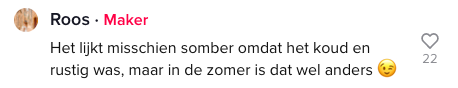 1. Vanwege corona is Roos meer van Nederland gaan ontdekken. Ze deelt de plekken op TikTok. Wist je bijvoorbeeld dat Dokkum er zo leuk uitziet?
