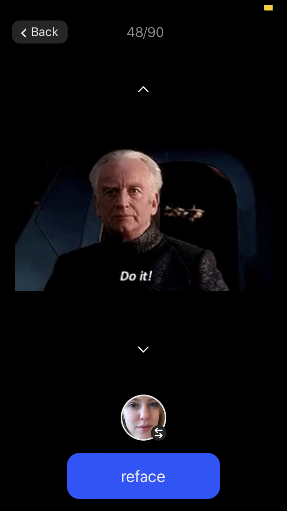 8. Het werkt heel simpel. Kies een GIF, kies een selfie en tik op ‘reface.’