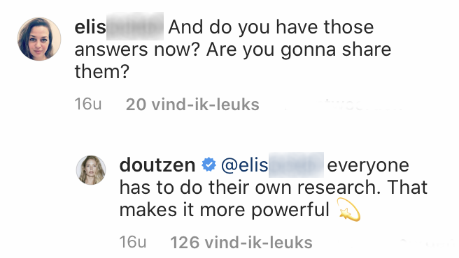 1. Dit is de post van Doutzen. In het kort zegt ze het volgende: