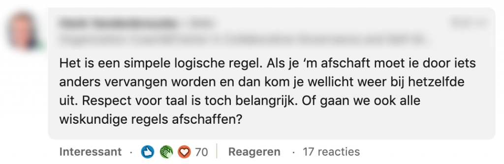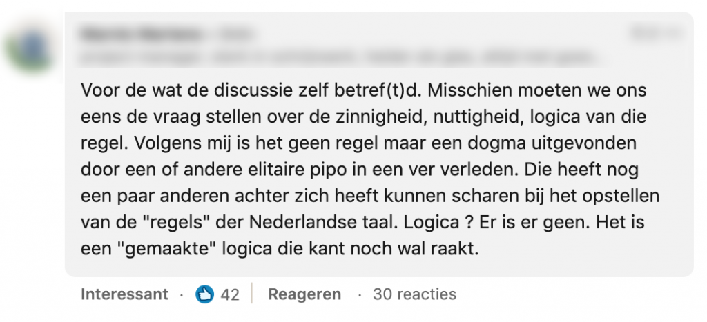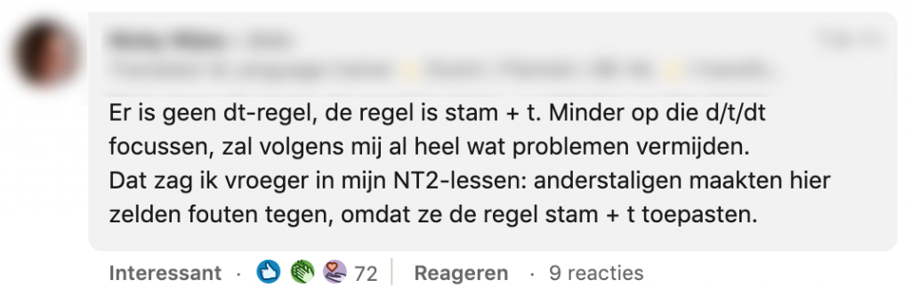 1. Laurien vroeg op LinkedIn wat mensen vinden van de dt-regel.