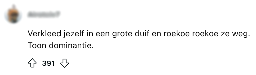 4. De kans bestaat dat je buren de politie bellen, maar je bent in ieder geval wel van de duiven af.