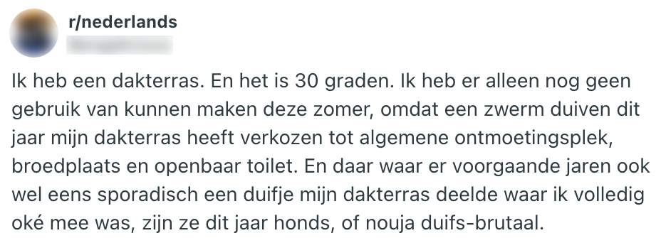 1. Het dakterras van deze bewoner is compleet veroverd door duiven.