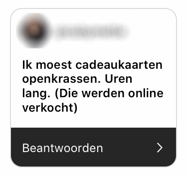 6. Ooit een cadeaukaart online gekocht? Daar heeft dus iemand op zitten krassen.