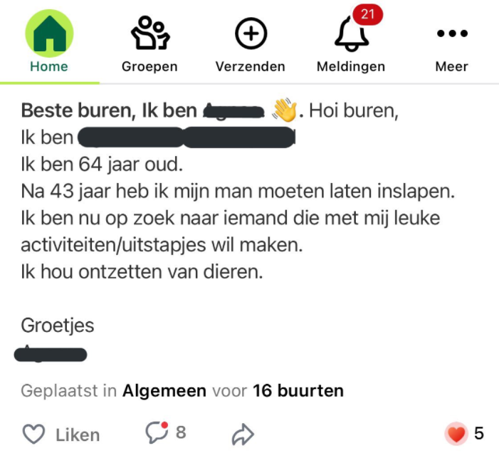 Eenzame oudere deelt aandoenlijk berichtje in de buurtapp