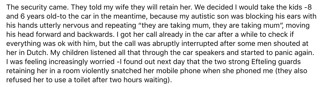 13. Tot slot laat de Efteling laat weten dat het verhaal van de vrouw niet aansluit met het verhaal van de medewerkers.