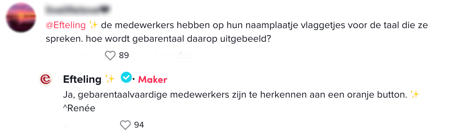 5. De Efteling heeft hun medewerkers die gebarentaal kunnen een speciale button gegeven.