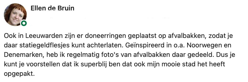 We worden ons allemaal steeds bewuster van wat goed is voor het milieu en wat niet. Sinds kort zit er dan ook op kleine flesjes statiegeld, zodat dit plastic niet in de berm of het bos verdwijnt. Op LinkedIn deelt Ellen een bericht met een initiatief dat alleen maar pluspunten heeft.