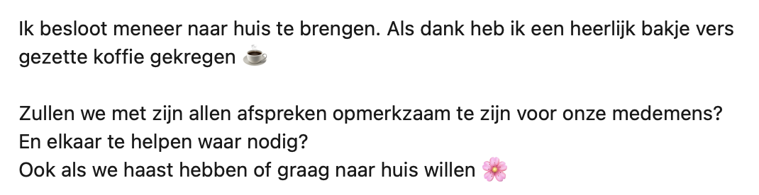 3. Ellen besluit het er niet bij te laten zitten en zorgt ervoor dat meneer veilig thuis komt.