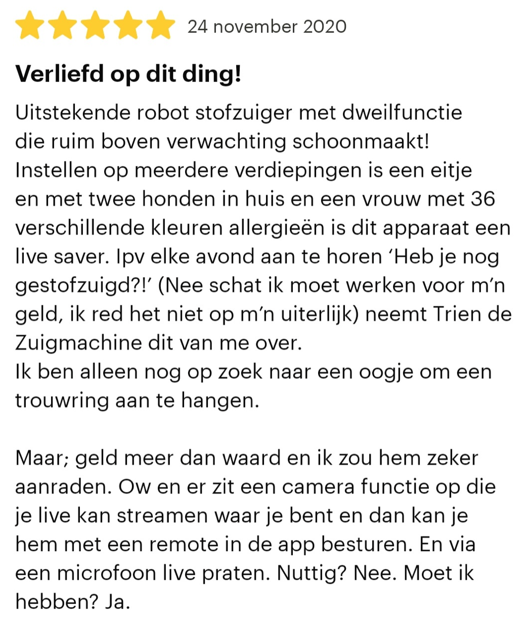4. Ook is het toch fijn dat mensen de tijd nemen op zo’n uitgebreide review te schrijven.