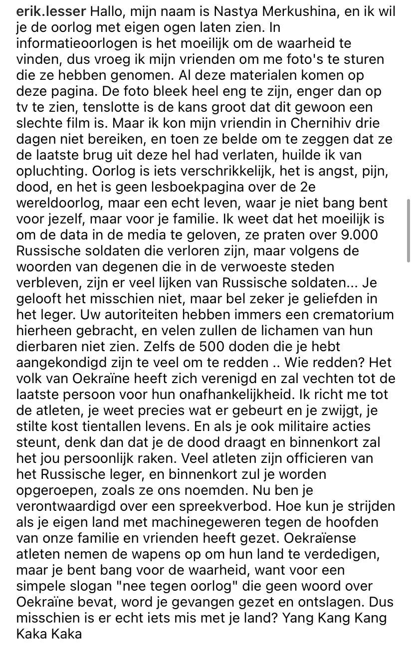 3. Ook andere Oekraïense sporters laten zien in wat voor situatie ze momenteel leven. Uiteindelijk is de biatleet dankbaar dat ze haar verhaal mocht delen op het account van Erik.