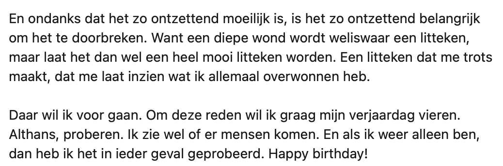 Voor veel mensen is hun verjaardag een gelegenheid om naar uit te kijken. Maar dit geldt lang niet voor iedereen. Dat blijkt wel uit het dappere bericht dat Erik op LinkedIn deelt. Doordat zijn verjaardag vroeger vaak traumatisch is geweest, wil hij het liever niet vieren. Uit de reacties blijkt dat meer mensen dit ervaren.