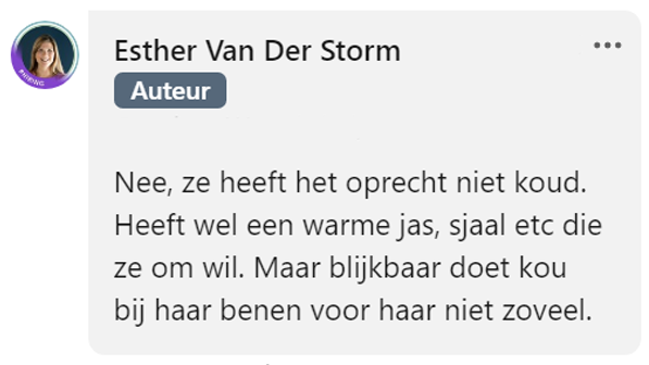 6. En dan het antwoord op de prangende vraag of het dochtertje van Esther het dan écht niet koud heeft: