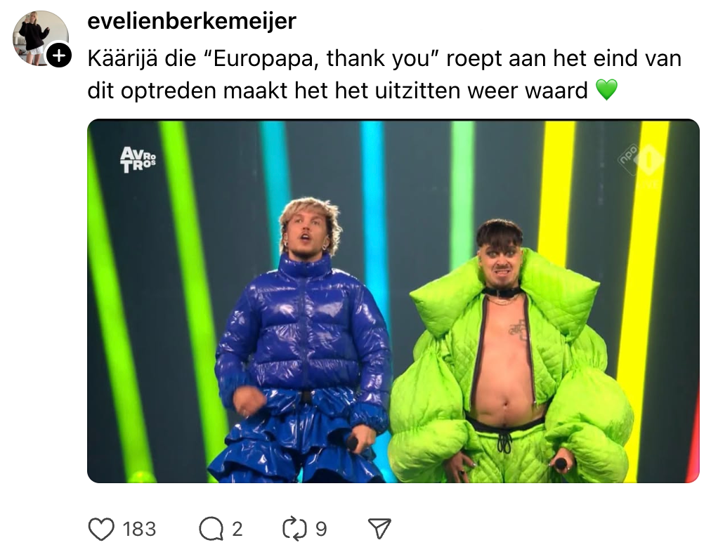 18. Een kleine ode aan Joost Klein maakt de Eurovisie Songfestival-finale de lange zit waard.