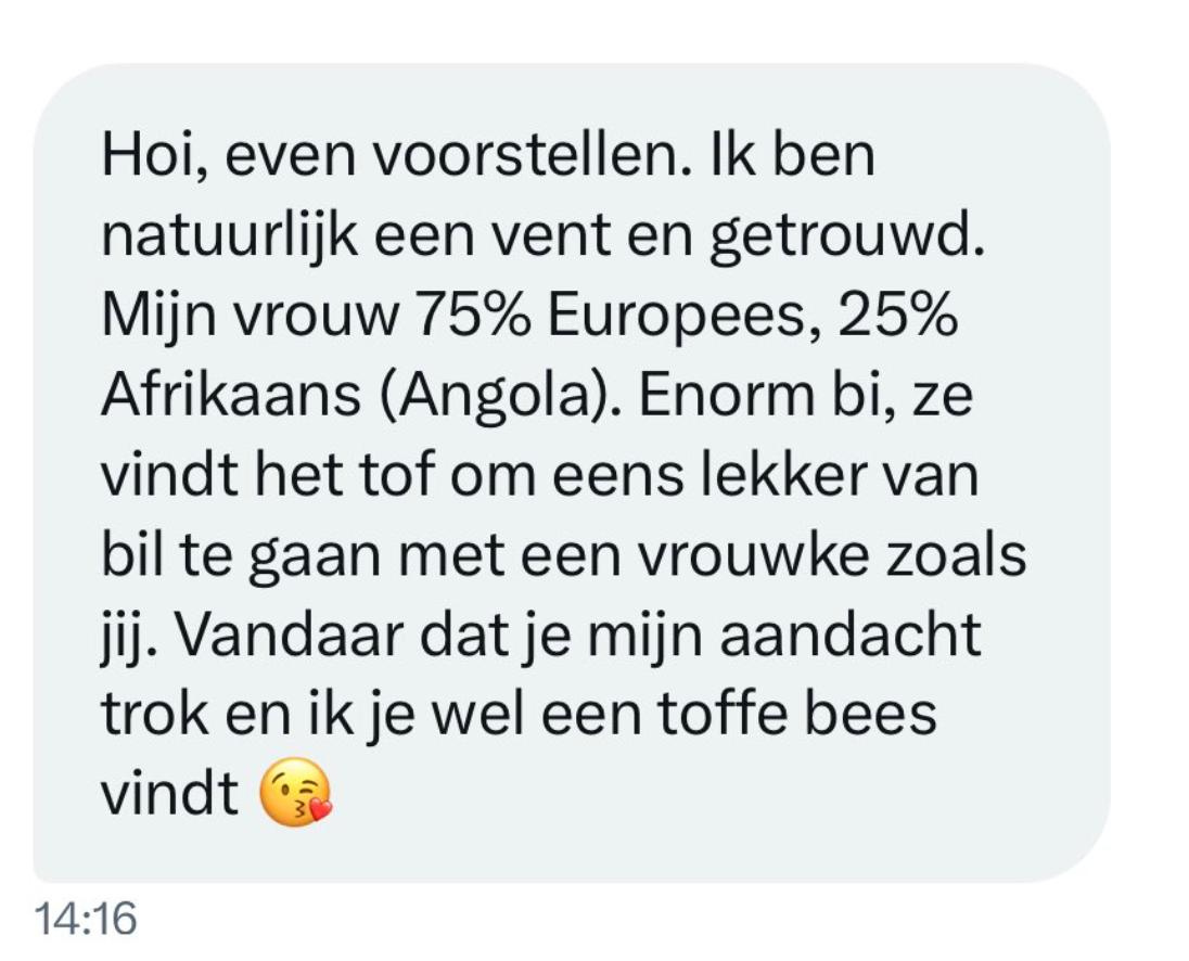 Zelfs in 2023 vinden sommigen het lastig om niet in bepaalde hokjes denken. Eveline is biseksueel en krijgt een bericht met een vreemd verzoek van een onbekende man. Hij wilde een ‘speels avontuurtje met z’n drieën’, maar daar heeft Eveline niet bepaald interesse in. Daarom doet ze op Twitter een oproep om te stoppen met het sturen van dit soort stereotyperende berichten.