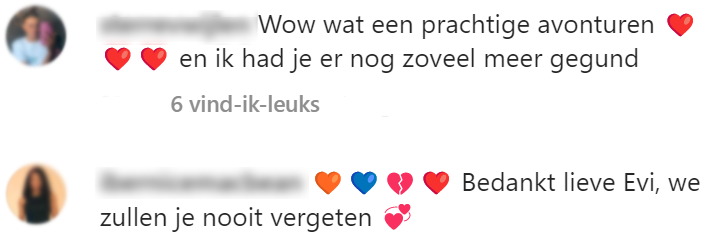 6. Evi heeft haar laatste tijd gelukkig optimaal weten te benutten, maar dat neemt niet weg dat ze enorm gemist wordt.