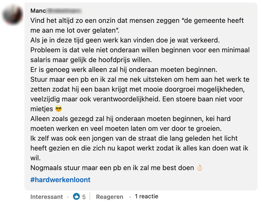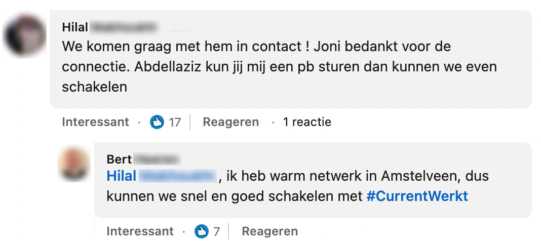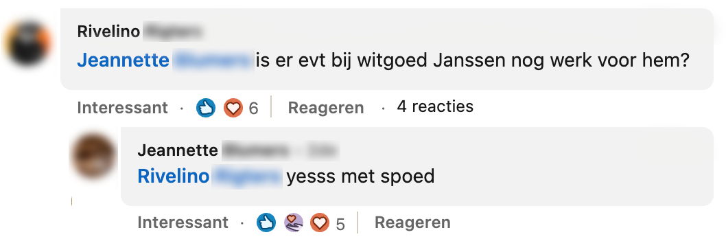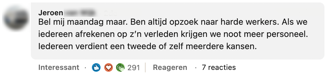 2. Al snel reageren veel potentiële werkgevers onder het bericht.