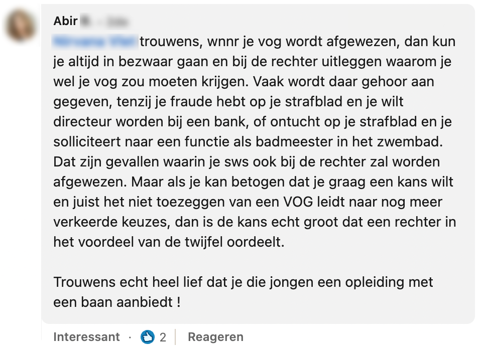 2. Al snel reageren veel potentiële werkgevers onder het bericht.