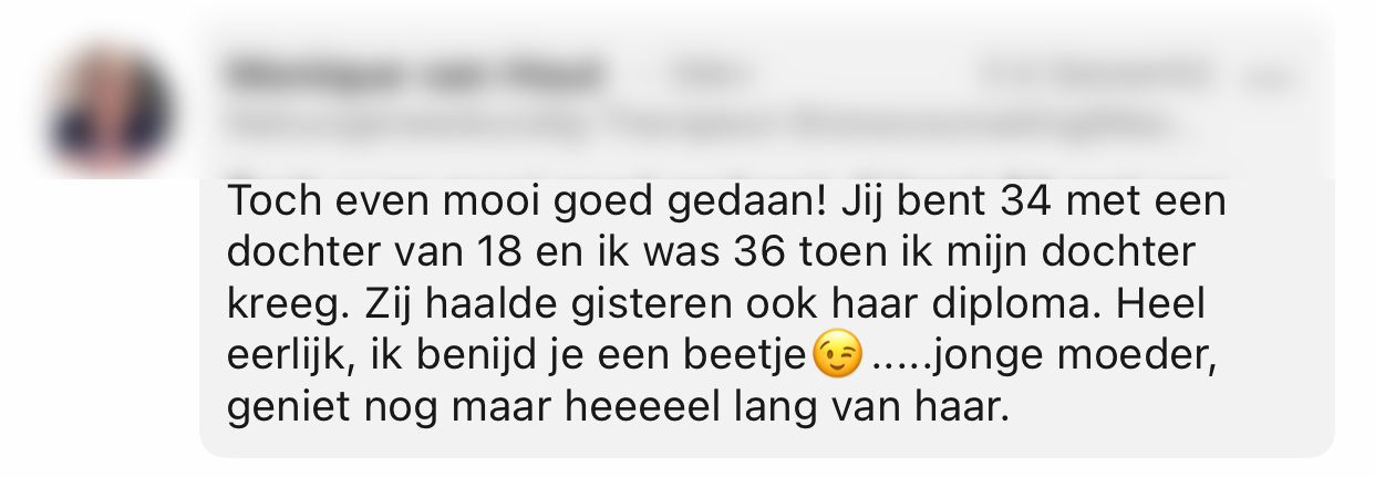 Tara wordt streng religieus opgevoed als Jehova’s Getuige en is pas zestien jaar als ze zwanger wordt. Ze besluit vrijwel meteen het kindje te houden. Tara heeft het niet makkelijk, maar weet haar school af te maken en door haar ambitie ver te komen. Inmiddels is Tara’s dochter Yarah achttien jaar en net geslaagd voor haar HAVO-diploma. Tara deelt met trots een post op LinkedIn.