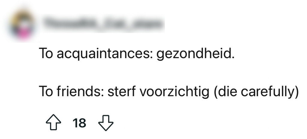 Waar de één met een strak gezicht en zonder zonnebril recht in de zon kan kijken zonder te niezen, zit de ander zonder aanleiding het hele kantoor bij elkaar te blaffen als een verkouden zeehond. Gelukkig hoef je je daar nooit voor te schamen en volgt er in de meeste gevallen een goedbedoelde ‘gezondheid’. Aangezien dit in andere talen net effe anders gezegd wordt, vraagt deze redditor zich af wat Nederlanders zeggen als iemand niest. En dat zorgt voor een hoop sarcastische antwoorden…