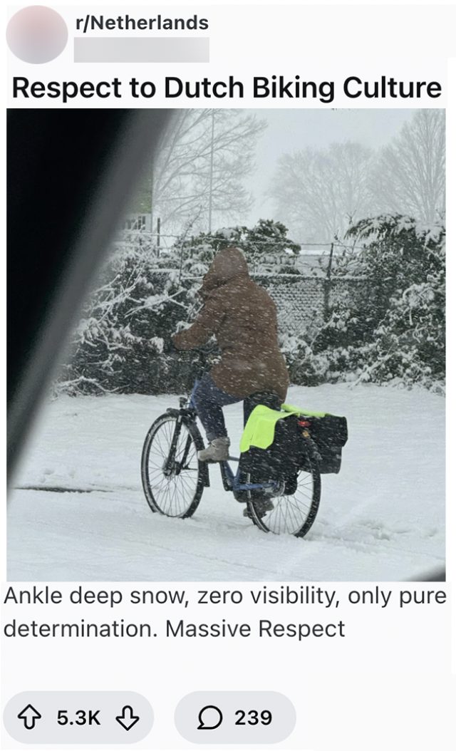 Zodra er in Nederland ook maar een paar sneeuwvlokken vallen, besluiten het openbaar vervoer en de snelwegen dat het wel welletjes is. En dan zit er maar één ding op: met het stalen ros naar werk of school. Ja, ook als het wegdek eruitziet alsof het speciaal is ontworpen om je nek erop te breken. Deze expat is verbaasd over die Nederlandse gewoonte en wordt vervolgens ondergesneeuwd met reacties van Nederlanders.