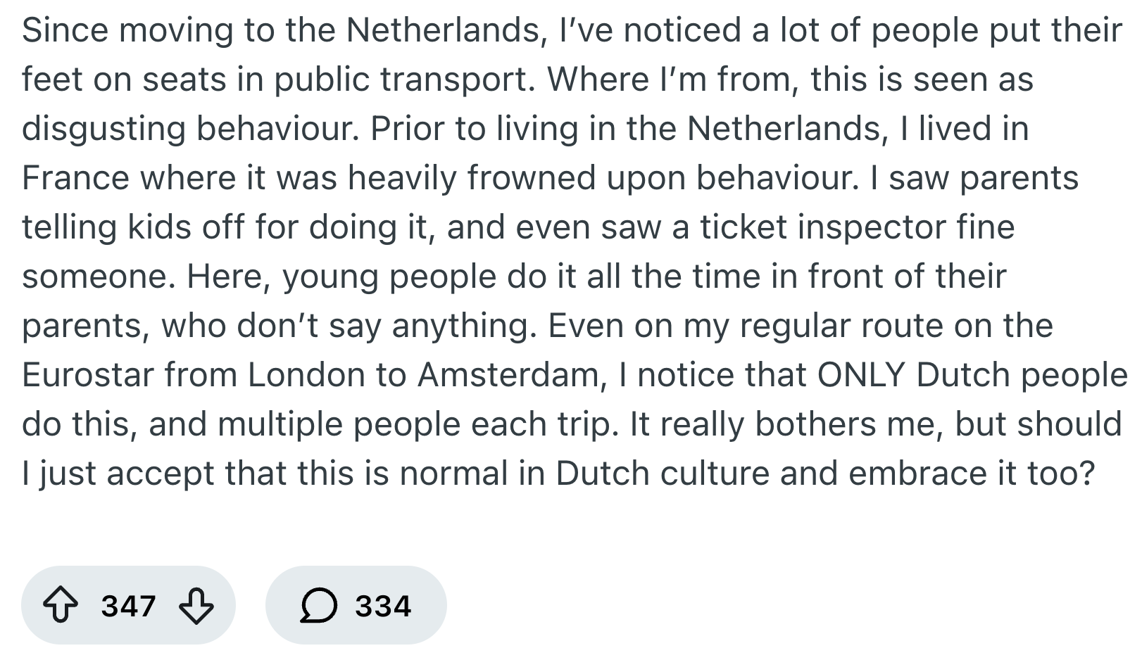 Expat stoort zich mateloos aan smerige actie van Nederlanders in openbaar vervoer