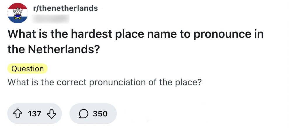 Als je de Nederlandse taal leert, komt er veel op je af. Denk bijvoorbeeld aan ’t kofschip, de onvoltooid verleden tijd en allerlei onbepaalde voornaamwoorden waarvan je geen idee had dat ze dat waren. Ook de uitspraak van sommige woorden is ingewikkeld. Een Reddit-gebruiker vraagt zich af welke plaatsnamen het meest lastig zijn om uit te spreken, en velen weten daar wel raad mee.