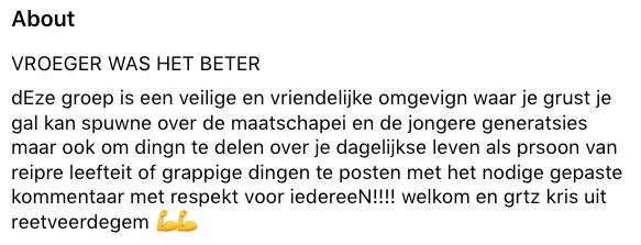 De Facebookgroep ‘Een groep waarin we doen alsof we Babyboomers zijn‘ heeft momenteel zo’n 20 duizend leden. En de titel zegt het dus al: er wordt hier flink de draak gestoken met wat de oudere generatie allemaal online gooit. Want laten we eerlijk zijn: de uitspattingen zijn typisch en ongelofelijk herkenbaar. En ook wel heel grappig dus.