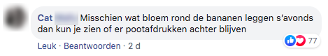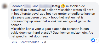 Vledder en de Cock eat your heart out. There’s a new kid in town en haar naam is Jans. Jans zat met een vraag: haar bananen werden continu aangevreten. Muizen, zou je denken, maar er was in geen velden of wegen een keutel te bekennen. Dus gooide ze haar vraag op Facebook. Het resultaat: een bloedstollend spannende zoektocht naar deze bananendief. Én een heterdaadje.