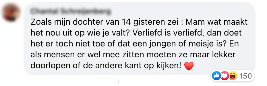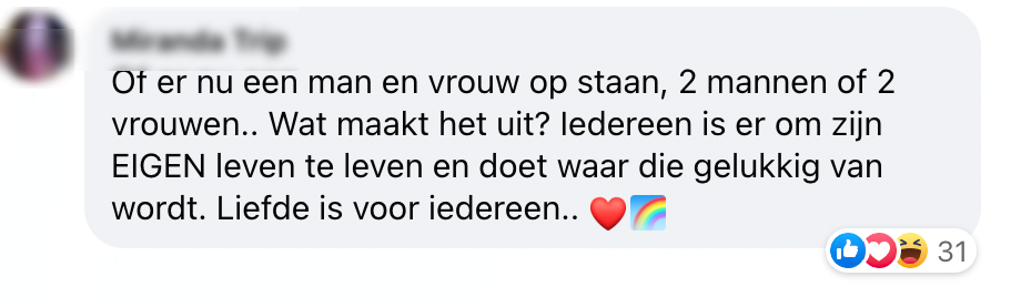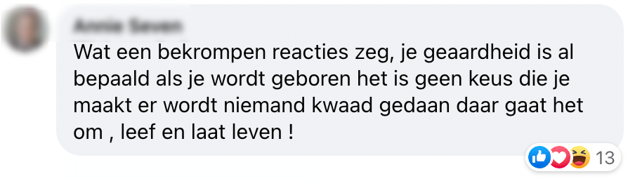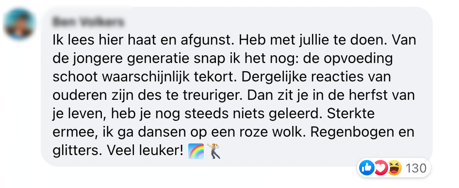 Love = love, ongeacht of je homo-, bi-, aseksueel, of iets dat daar tussenin valt, bent. Toch zijn er helaas nog altijd een aantal mensen met een tikkie bekrompen mindset in deze wereld ,die het hier niet mee eens zijn. En dit dan, op de koop toe, ook nog eens lekker willen laten weten op social media. Dit gebeurde eerder vandaag onder een post van NU.nl. Maar, gelukkig zijn er dan ook nog de mensen die het opnemen voor de LGBTQIA+ community en keihard van zich laten horen.
