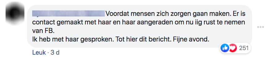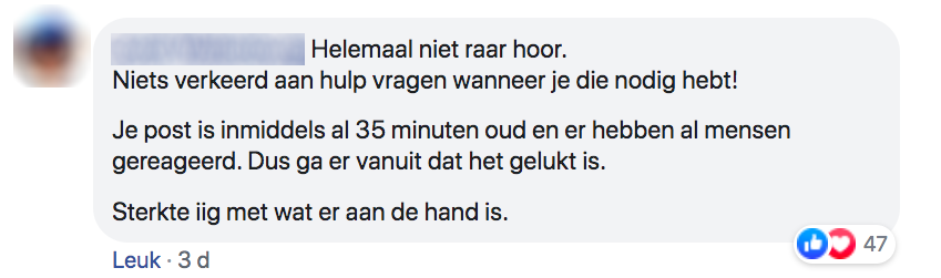 7. Kort daarna volgt het bericht dat ze gelukkig inderdaad door iemand uit de groep geholpen is.