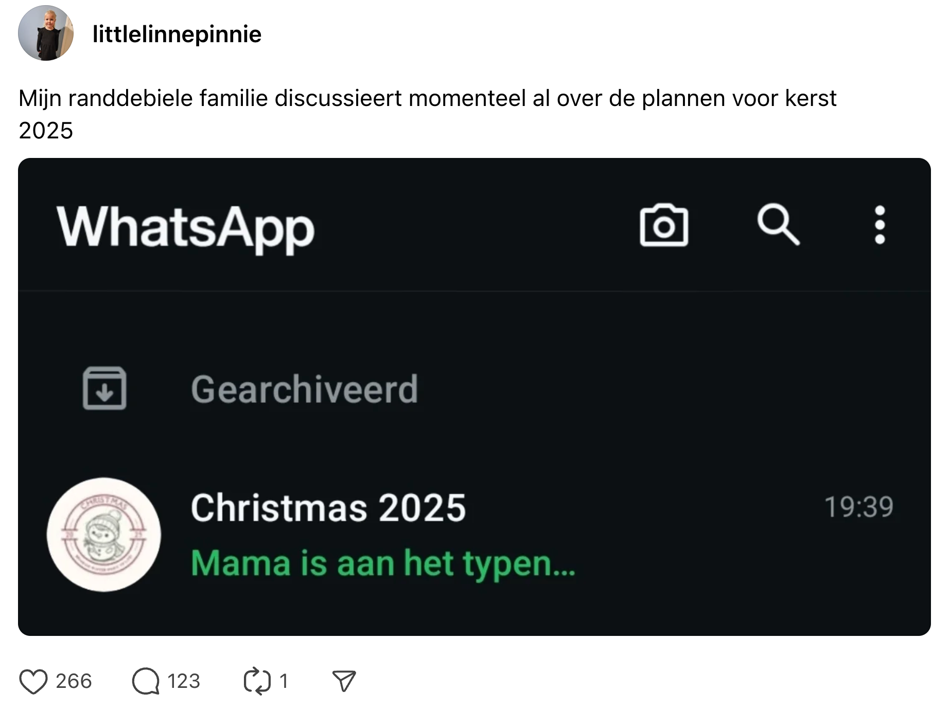 Van je familie moet je het hebben. Zeker rond de kerstdagen, waarop je iedere paar uur je hele hebben moet verkassen naar het volgende verre familielid dat je al zeker vijf maanden niet hebt gezien. Maar wat ís het gezellig. Om je eraan te herinneren dat het altijd nog een tandje erger kan, zijn hier drieëntwintig momenten van familieleden die je met open mond leest.