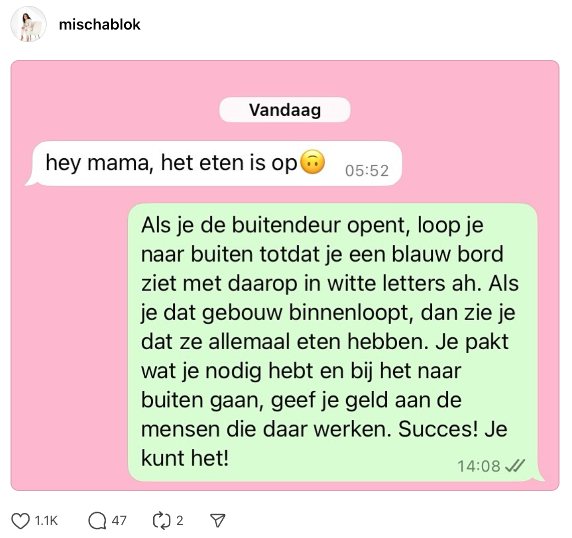2. Deze moeder heeft het ouderschap helemaal uitgespeeld.