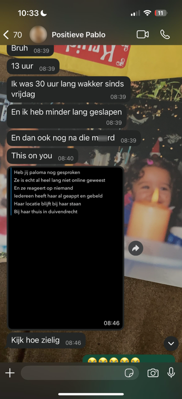 2. Dertien uur geen reactie van Paloma staat voor haar vrienden en familie gelijk aan VERMIST.