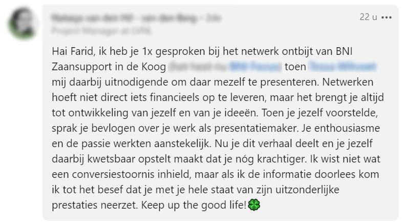 9. Anderen krijgen juist extra bewondering voor Farid, die ondanks zijn conversiestoornis keihard werkt als ondernemer.
