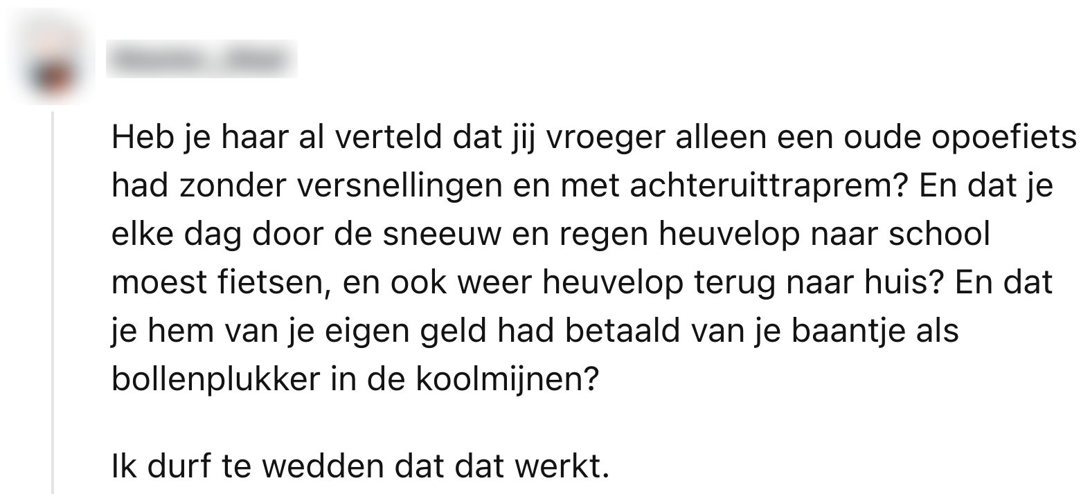 Waar de meeste kinderen op eerste kerstdag het liefst een fatbike onder de boom vinden, doen veel ouders er alles aan om dat zwarte monster zo lang mogelijk buiten de deur te houden. Een ouder raakt verwikkeld in een verhitte discussie over deze fiets, en besluit dan een geheel eigen draai aan de naam te geven. En daardoor lijkt de fiets ineens een stuk minder aantrekkelijk…