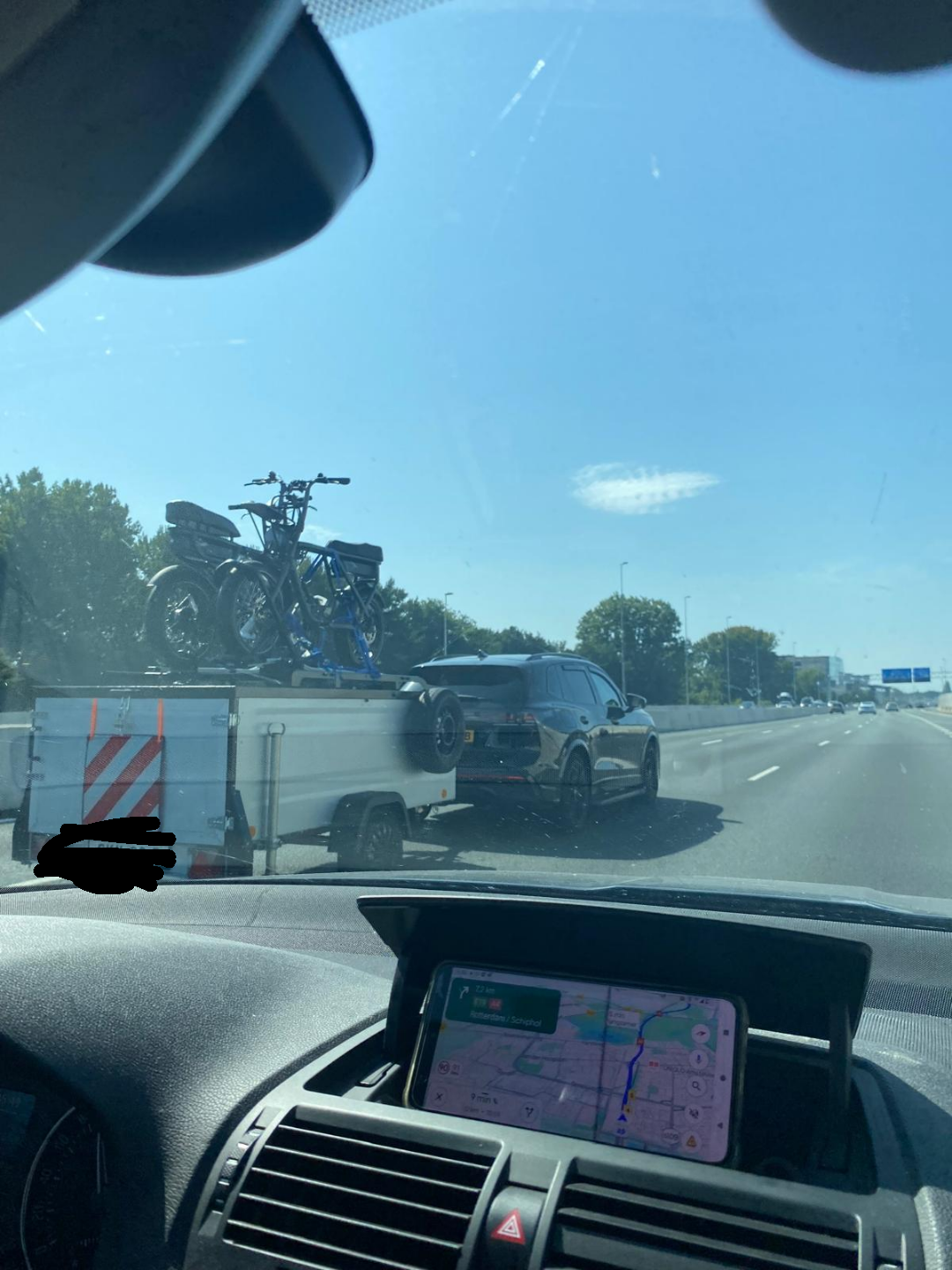 Automobilist spot op de snelweg aanhanger met fatbikes die vet veel vragen oproept