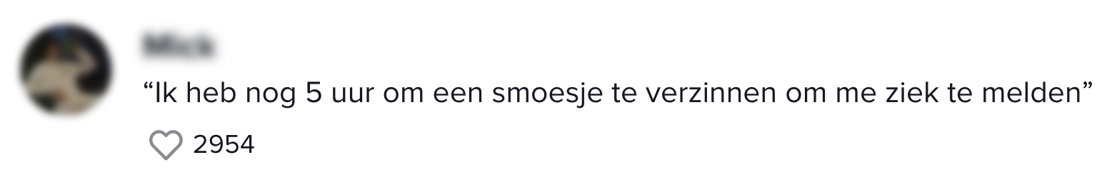 3. Als het niet lukt om op tijd een smoes te verzinnen, zitten de collega’s de volgende ochtend met de gebakken peren.