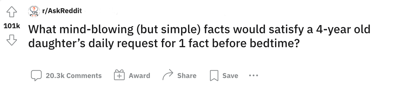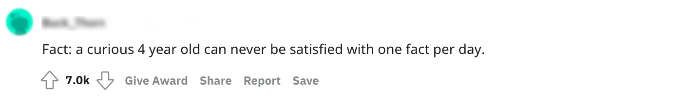 1. Deze redditor vraagt zich af met welk feitje je een 4-jarige stil krijgt.