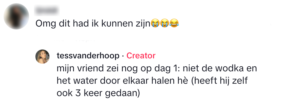 Naast dat festivals hartstikke leuk zijn, zijn ze vaak ook erg duur. Denk bijvoorbeeld aan je tickets, al je kampeerspullen of het glaasje water waarvoor je 3,5 munt moet neerleggen. Om na afloop niet volkomen blut te zijn, had Tess een plastic fles met wodka gevuld om in haar tent van te drinken.. Helaas vergeet ze de ochtend erna een belangrijk detail en begaat ze een grote blunder.