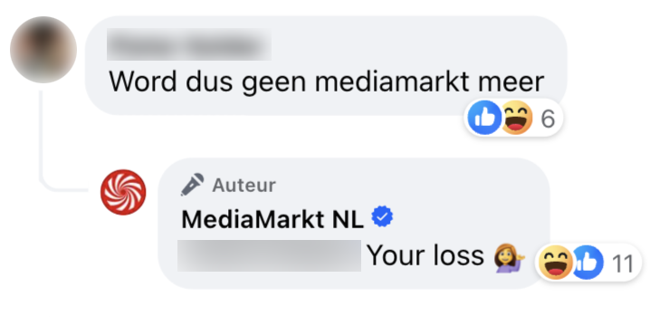 6. En ook hieronder verschijnen weer negatieve reacties, maar gelukkig haalt MediaMarkt haar neus daarvoor op.