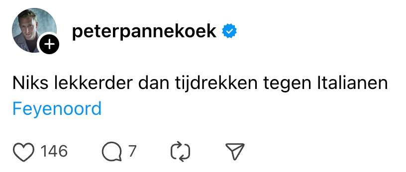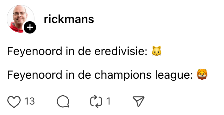 Overigens nog nooit een Amsterdamse voetbalkantine zo zien en horen juichen voor Feyenoord.