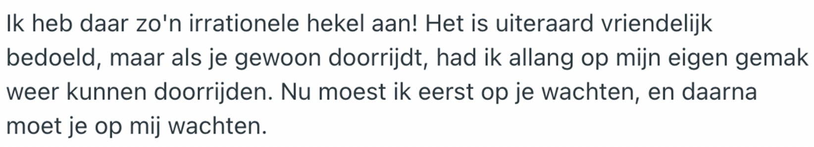 5. Deze irritatie komt meer fietsers bekend voor.
