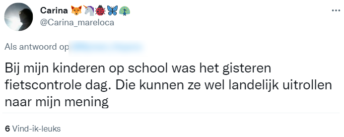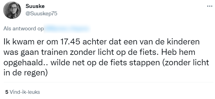 1. Ze vertelt het verhaal op Twitter, om zo anderen te waarschuwen voor de gevaren van fietsen zonder verlichting.