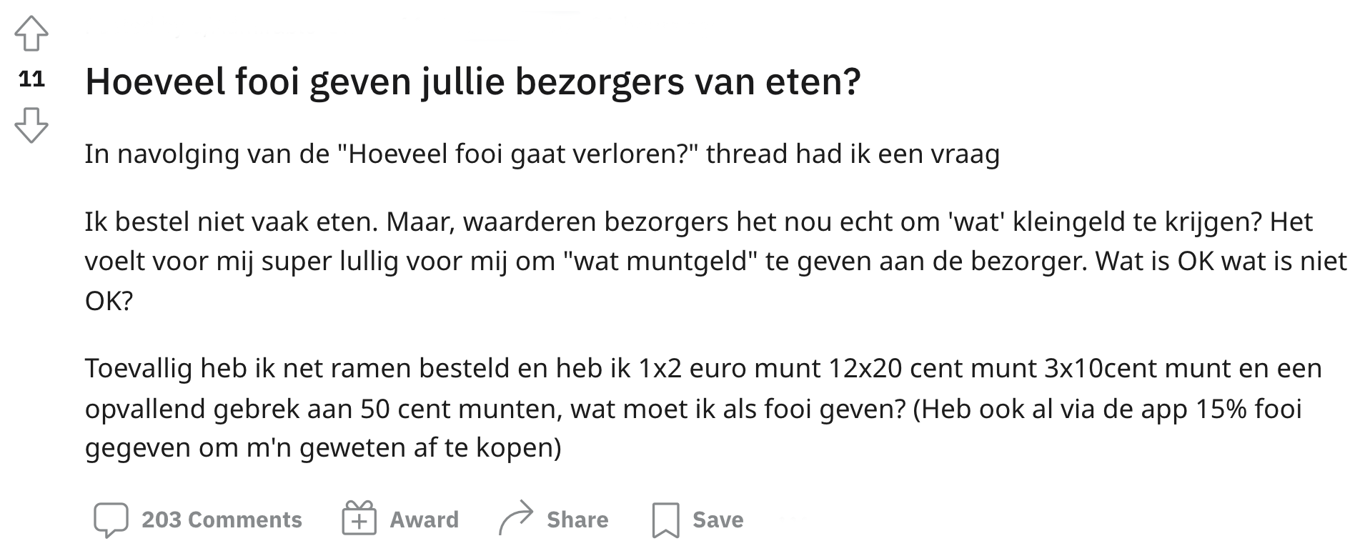 1. Een Reddit-gebruiker vroeg zich af hoeveel fooi andere mensen geven aan bezorgers van eten.