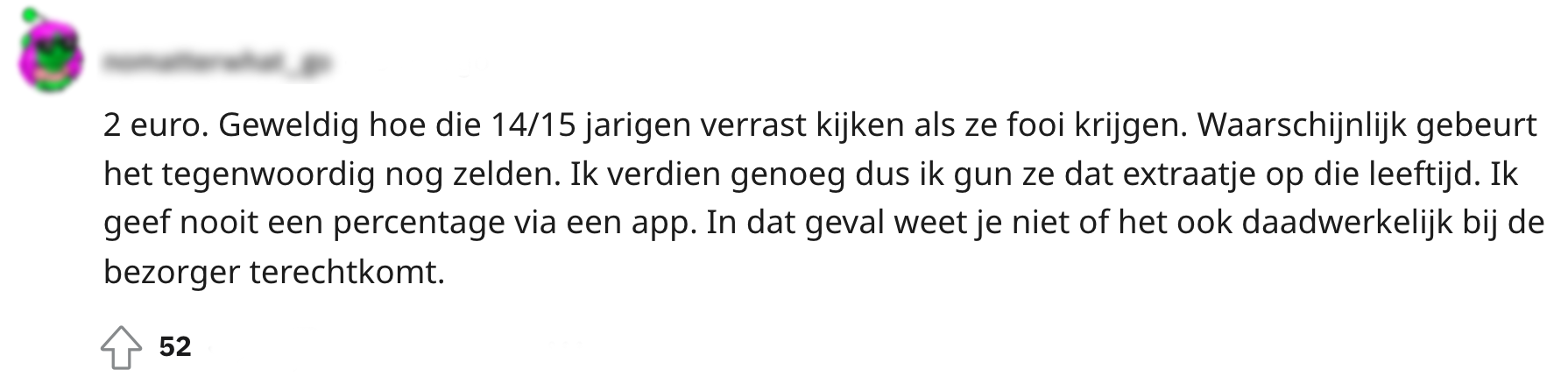 Het salaris van een bezorger van eten is meestal niet enorm hoog. En dat terwijl bezorgers vaak door weer en wind gaan om jouw eten bij jou thuis te brengen. Een fooitje is bij bezorgers dan ook vaak meer dan welkom. Deze persoon op Reddit vroeg zich af wie er allemaal fooi geeft aan bezorgers van eten en vooral hoeveel er dan wordt gegeven. Hij schakelde daarom de Reddit-community in en startte het gesprek. Maar of dat heeft gewerkt?