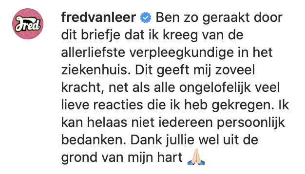 2. En tot slot wil hij iedereen bedanken voor de lieve reacties.